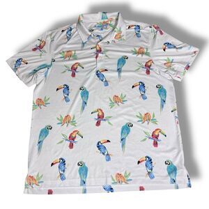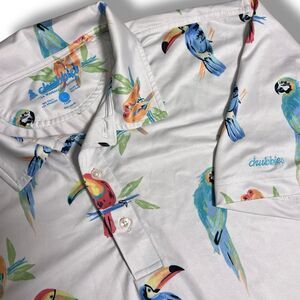 Chubbies Golf Men's Large Performance Polo Shirt The Dude Where's Macaw Stretch.
