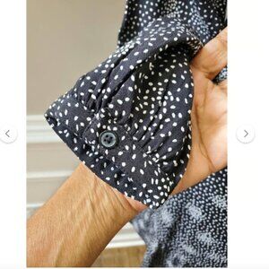 Elevate your fashion game with this black and white polka dot knee-length dress from LOFT. The dress features a mock neck, long sleeves, and a fit and flare style that perfectly accentuates your figure. The is made of lightweight, machine washable rayon, making it a perfect choice for any occasion, from party/cocktail to casual outdoor events.