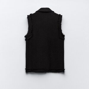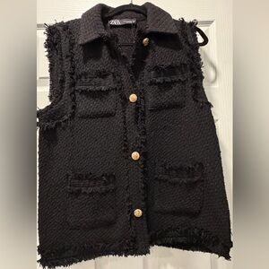 Zara Black Textured Vest with Gold Buttons