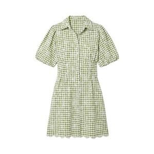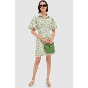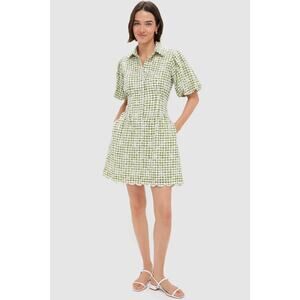 TUCKERNUCK Embroidered Floral Green Gingham Mini Delaney Dress Size XL NWT