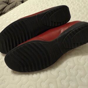 Elegant Red leather flats with zipper detail. Comfortable and stylish for everyday wear.