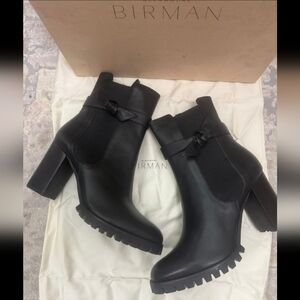 Crafted from waterproof leather, the Clarita Rain Boot will keep you looking polished when the elements are unexpected.Material: Waterproof Nappa Leather Ankle height bootie Round toe, Low heel, Zip-inside closure, Heel. Our products are 100% genuine.