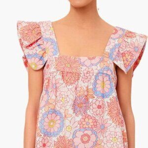 Tuckernuck x Cameran Eubanks Wimberly Folly Hazel Flutter Sleeve Dress. This is in a multicolored floral print and a size XL. Armpit to armpit measures 21 inches and shoulder to hem is 39 inches.
