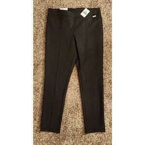 Calvin Klein Birdseye Slim Leg Ponte Pants Dark Academia Office Siren Size L NWT