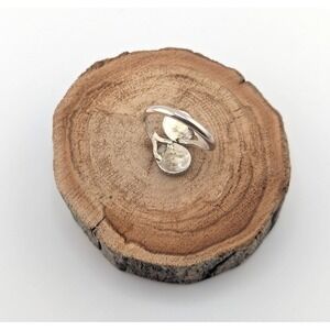 Zuni Flower Turquoise Bypass Ring Semi Adjustable NA Sterling Silver Sz 8.5US **