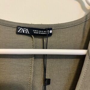 ZARA - Green Tie Front Sheath Dress V-neck 3/4 Sleeve NWT