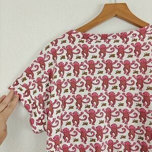 Roller Rabbit Pima Cotton Monkey Printed Short Sleeve Pajama T-shirt Size Small