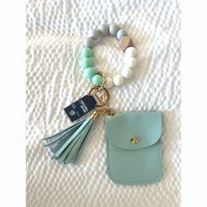 NWT Women's Car Key Ring Bracelet Blue Beaded Keychain Wallet Bag Charm