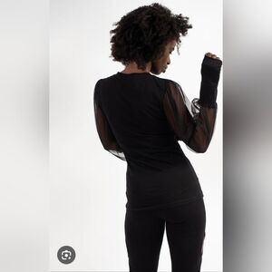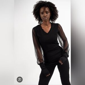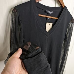 NEW Metamorphoza Top Small Tulle Sheer Sleeves Black Avant Garde Lagenlook