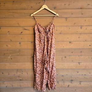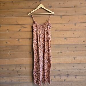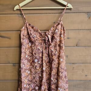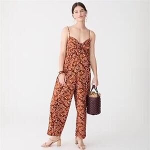 J. Crew Tie Front Jumpsuit Vintage Vines Floral Brown Boho 2 Sleeveless Smocked