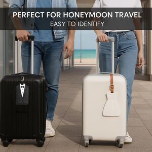 Elevate your love story with our stunning wedding-themed leather luggage tags! Adorably designed as a bride’s beautiful gown and a groom’s dapper tuxedo, these tags are the perfect addition to any couple’s travel gear or a charming highlight at wedding-themed events.