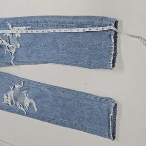 Looks Like: Medium, vintage indigo with destruction at knees and a finished, but distressed hem
