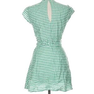 Reformation Rodin Linen Mini Dress Green Gingham Plaid Wrap Dress Medium