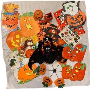 Vintage 18 Halloween Decorations Big Die Cuts Placemats Bat Clings Variety Lot