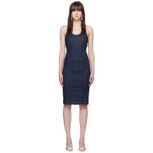 Alaia Sculpting Cross Back Straps Jean Dress in Denim Blue 42 US 10