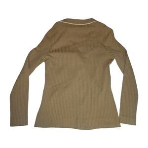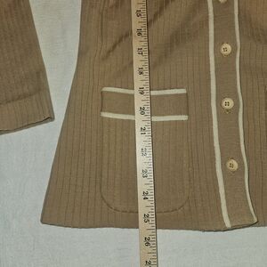 Vtg Tan Ribbed Knit Cardigan Sweater Womens S VNeck Button Front Retro 50s