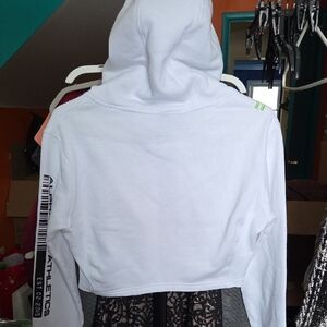 Alphalete White Crop Hoodie with Black Logo