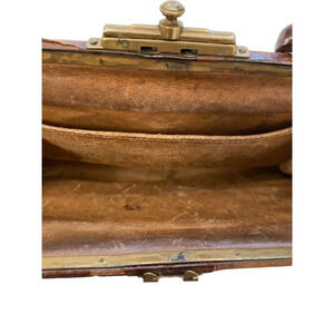 Vintage Gorgeous and XL 12" chocolate brown early 1900's Edwardian hornback alligator handbag with full osteoderms (back scales) that wrap from front to back. Skins are fabulously supple and glossy with double brass top locks and clasp (work perfectly!) and skin covered top handle, in great condition. The interior genuine leather interior with one long open side pocket is not in the best condition. There are no rips or tears in the leather however. Really the only flaw. A nice large bag which is in great condition for it's age. Incredible exterior condition