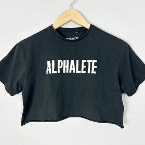 Alphalete Black Cropped Tee Short Sleeve Active Athlesiure Athletic Sz XS Womens