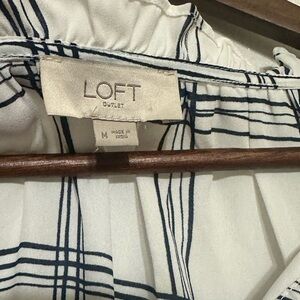 LOFT White and Blue V-Neck Long Sleeve Boxy Blouse