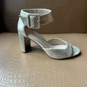 Pelle Moda Metalic Platinum Gold Women's Dressy Sandal Size 5.5 M 3” Heel.