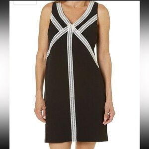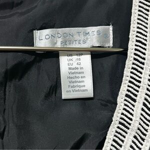 London Times Dress Black with White Accents V Neckline Work Dress Size 12P