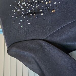 This vintage Positive Attitude blazer combines timeless tailoring with eye-catching detail. Designed in classic black with a stunning lavender lining, it features elegant sequin embellishments clustered on the front for a subtle yet glamorous finish. Made from 100% polyester, this structured piece is lightweight and perfect for adding polish to your office wardrobe or elevating an evening look.