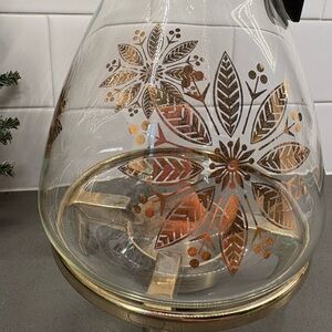 Vintage Glass Pyrex Carafe with the Golden Poinsetta or Atomic Starburst pattern.