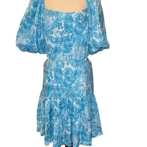 Lilly Pulitzer Amalfi Blue Sunny State of Mind Kylanne Elbow Sleeve Linen Dress