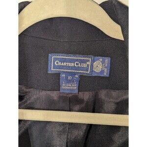 Charter Club 100% Wool Double Breasted Blue Blazer Womens Sz 10 Crested Academia