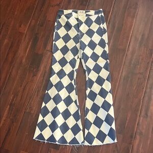 Free People Blue and White Checkered Flare Pants