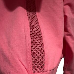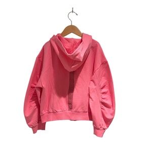 MONNALISA pink zip hoodie sweatshirt. Mesh details & ‘M’ detail on front.