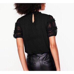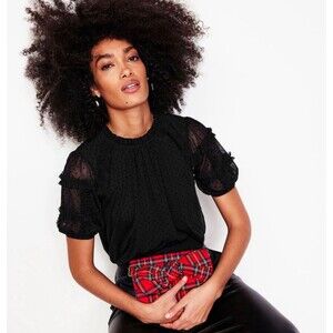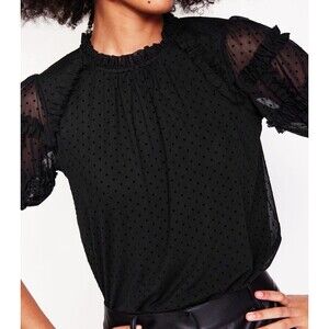 Boden Women’s 16-18 Black Polka Dot Tulle Blouse Sheer Puff Sleeves Whimsigoth