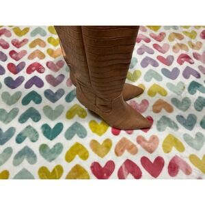 Antonio melani Knee High Boots Croc Embossed Tan Heel Pointed Toe Womens 8.5