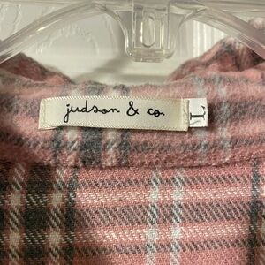 Judson & Co women’s size L shacket jacket, super cute and warm in pink and grey stripes.