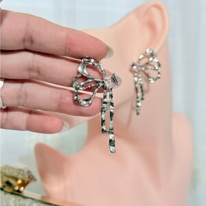 These chic silver earrings are adorned with subtle pink highlights, adding a touch of elegance to your ensemble.