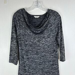 Soma 3/4 Sleeve Cowl Neck Maxi Dress Black Gray Side Slit Stretch Size Small