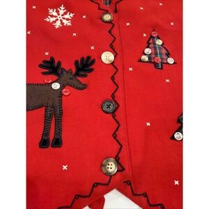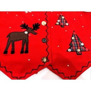 Talbots Christmas Women's Red Wool Buttons Applique Vest Size M Tartan Plaid
