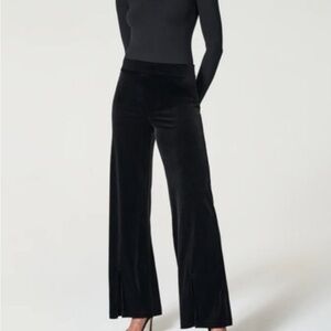 SPANX Black Velvet Split Hem Wide Leg Pants