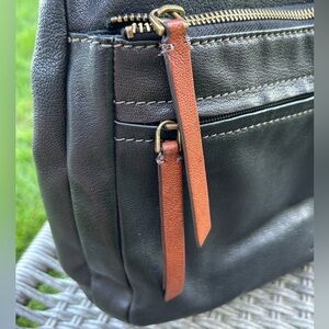 Fossil Corey Black Leather Crossbody w/ Brown Strap & Multiple Pockets 13” x 10”