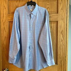 PETER MILLAR Blue & Orange Check Button Down Shirt Size: XXL Color: Blue/Orange Button collar Long sleeve EUC