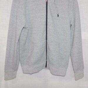 Polo Ralph Lauren Mens M Light Gray Black Pony Double Knit Full Zip Hoodie *READ