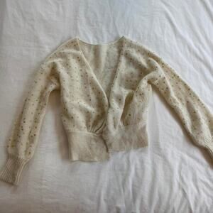 sezane beautiful cream and white cardigan with gold accents