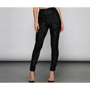 Blue B Women’s Black Sequin Pull-on Legging Pant Large