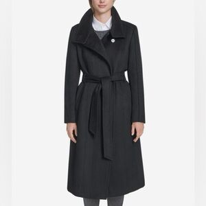 New Cole Haan Women's Slick Wool Belted Coat In Black Size 14