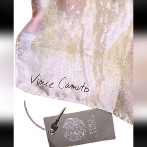 Elegant floral scarf by Vince Camuto. Features pink, green, and white hues. Perfect for any occasion.