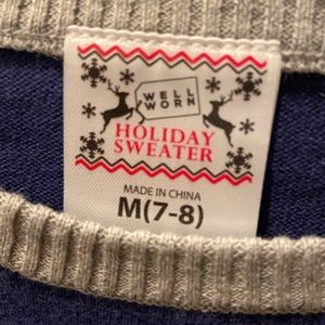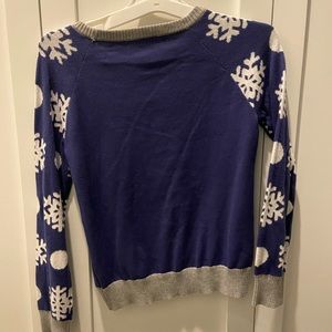 Girls size 7/8 blue /grey sweater with white snowflakes! One snowflake is reversible sequence one side grey other teal as seen in picture! Makes a nice gift!
