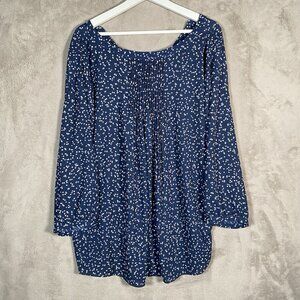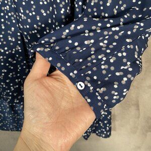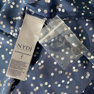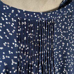 NYDJ Pintuck Pleat Back Blouse Plus Size 1X Pisco Polka Dot Blue White 3/4 Sleev