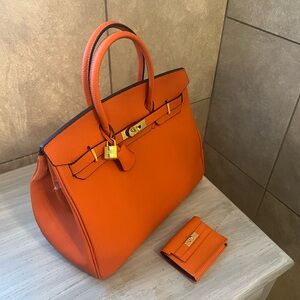 Elevate your style with this elegant orange satchel. Perfect for adding a vibrant touch to any outfit.