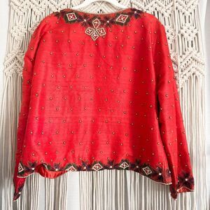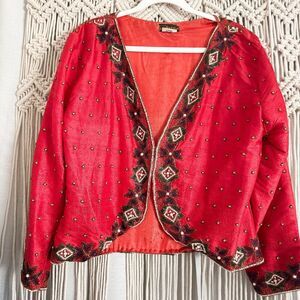 Gorgeous vintage LifeNstyle red beaded silk jacket, made in India and fully embellished with intricate hand-beading. A true statement piece perfect for holiday parties, evening outfits, formal events, and vintage styling.